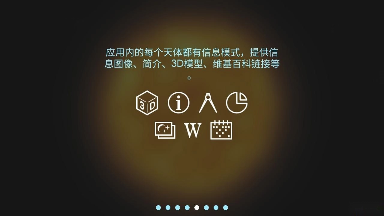 6、太阳系中的每一个星体都有信息模式,提供信息图像、简介、3D模型、维基百科链接等。