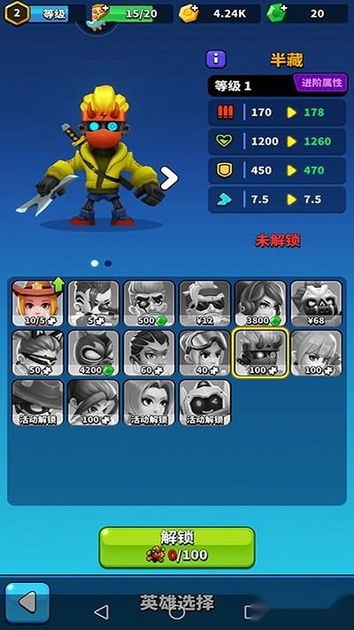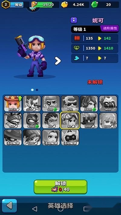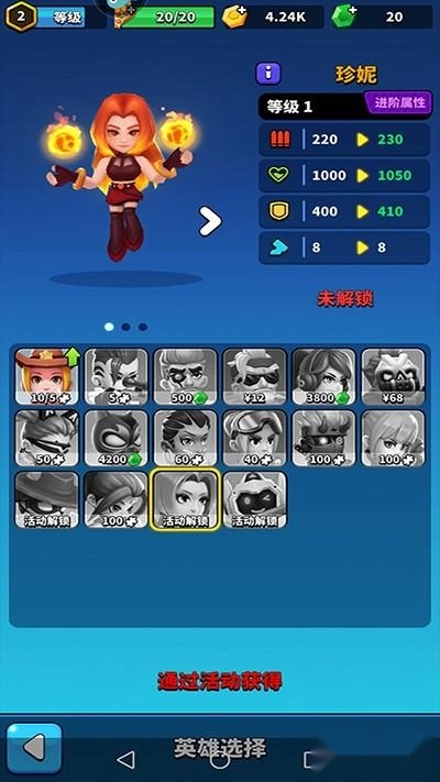 多达近二十个英雄角色,玩家进入英雄模式中便可逐步启用,让自己的技能飞升;