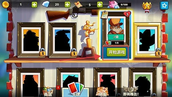 1、挑选【2级】角色卡片,点击【开始游戏】按钮,进入沼泽战斗关卡,准备抵御怪物入侵。