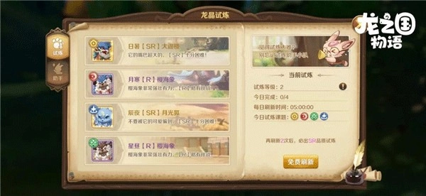 当然,如果你觉得自己的实力和技巧足以挑战SR难度的龙晶试炼,也可以刷新当前龙晶试炼——刷新一定次数,必出SR难度试炼!
