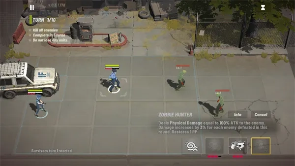 1、体验剧情驱动关卡,在废弃街道、加油站等真实场景完成生存挑战;2、可组建含近战战士、医护人员等多职业队伍,角色有专属技能体系;3、采用深度回合制战斗,依角色特性与形势制定战术;4、融合生存探索、战术布局与角色养成,带来沉浸式体验。