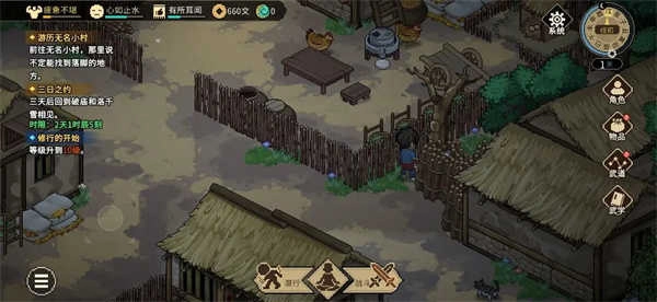 5、充满烟火气息的像素武侠世界。游戏中有着自然流逝的时间,各色NPC都有自己独立的行为AI。