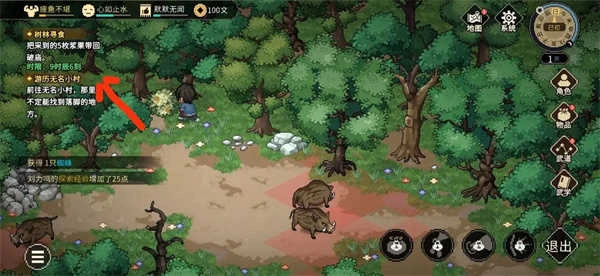 打开箱子后不要往右走,转而往左走会遇到猎户,这场战斗主要依靠猎户即可;之后跟樵夫对话能获得一把斧头,在这里存档后,需要刷一块野猪肉——不过修罗模式不建议刷,不仅速度慢,试玩版也没必要追求完美;如果想刷,就刷正上方那一头猪。