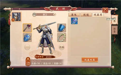 不同武将的技能和属性都不尽相同,玩家可自行选择主副武将。主副武将的不同组合将给玩家带来不同程度的战力、属性加成。