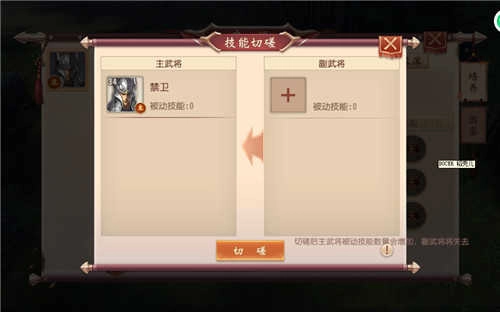 主武将可对副武将进行切磋,以获得更多技能。副武将被切磋后将消失。