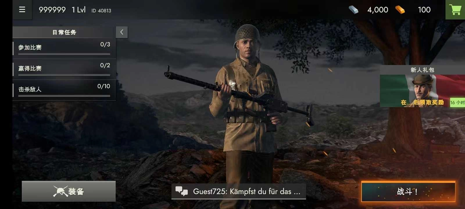 2、点击下方的图标可以进行人物的切换,在右边可以选择枪支进行装备,选好之后返回主页面,点击上图右下方的【战斗】;