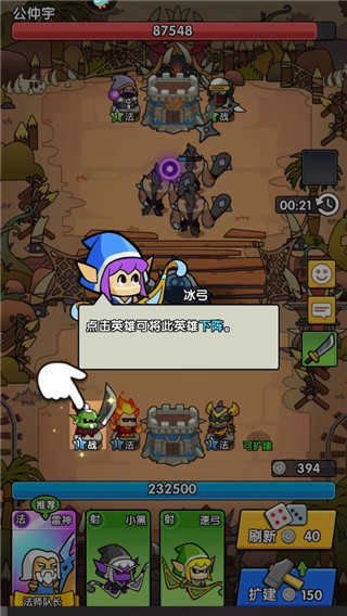 玩家点击扩建刷新即可购买英雄,完成自己的战斗组合,在战场上的英雄之间互有配;