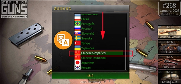 进入游戏后会出现语言设置选项,你只需向下滑动找到“简体中文”并选择就可以了。