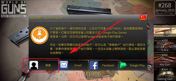 2、接着就会出现登录界面,没有相关账号也没有关系,点击游客就能免费畅玩。