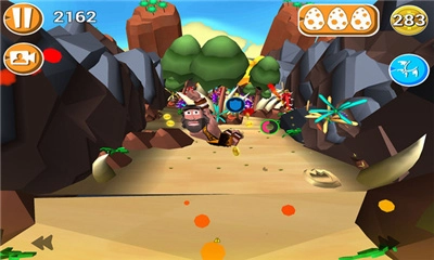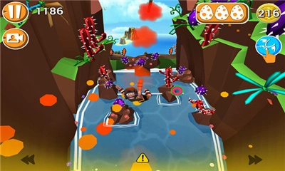 背景设定在远古时代,玩家扮演菲力,在寻找恐龙蛋时不小心触怒了火山,带来刺激的下坡冒险。