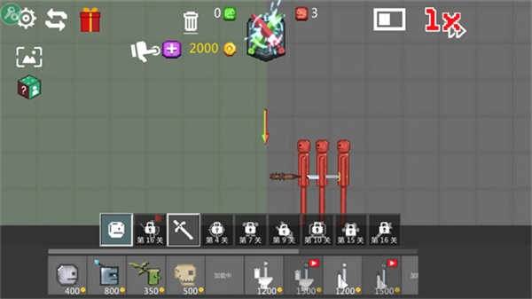 -首先,进入游戏后,你会看到主界面上方有一个菜单栏,点击左侧按钮可以自由切换多种游戏模式。无论是沙盒模式、关卡模式,还是无尽战争,你都能找到自己喜欢的玩法。