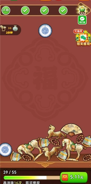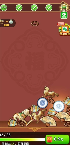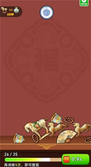 多福珍宝是一款玩法简单的合成小游戏,玩家只需快速合成相同等级的珍宝,就能持续领取红包;合成达到一定次数,还能领取对应的奖励,奖励可按比例兑换,最低0.1元即可到账。游戏操作轻松便捷,超多福利等你来拿。