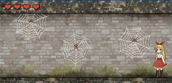 1、首先操控安娜时,会遇到一群小蜘蛛,需要被这些小蜘蛛咬到最后一滴血耗尽。
