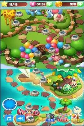 在闯关模式中,需要玩家根据所显示的关卡要求收集糖果球,并成功完成解救小动物的任务。