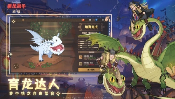 驯龙高手旅程官服由环球产品与消费体验部门授权,明日世界自研并发行,是一款改编自电影《驯龙高手》的模拟经营育龙游戏。游戏高度还原电影细节,超萌的没牙仔、机敏的风里飞等近百种巨龙均以电影为蓝本精心打造。故事背景设定在维京时代,玩家将化身驯龙学院的龙骑手,与小嗝嗝及其伙伴们携手开启冒险,共同守护博克岛。