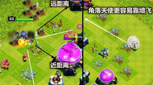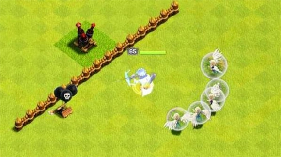 2、玩女王最重要的是走位,假若部落战或者是日常的搜鱼实在难以3星,那就尽量让女王在阵型的外层游走,配合5个天使,拆除四分之一的防御建筑后,再放下主力部队,比你让女王和兵种一起进阵,更能快捷、安全的抵达大本营。女王带五个天女远比四个天使更加流畅,拆除阵型外围时,会比四个天使,稍微走得更远一些。原因是五个天使遇到黑雷,也能保证剩下的天使对女王,给你足够的治疗量。