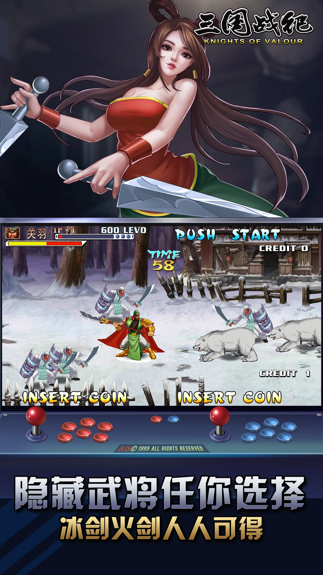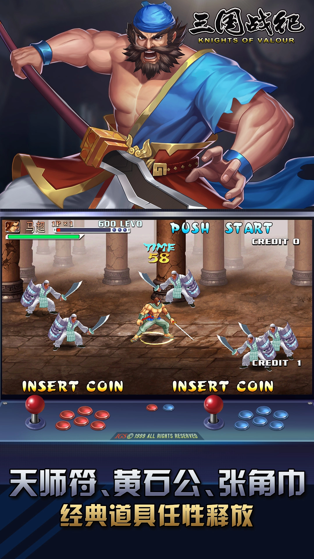 三国战纪风云再起手机版是IGS正版授权的经典街机移植游戏,完整保留了原作的核心玩法。游戏精准复刻街机操作手感,采用虚拟摇杆设计,让玩家重温原汁原味的格斗对战体验——通过释放角色专属技能与无双连击,对敌人造成强力打击。战斗中还还原了街机版的道具系统,黄石公、张陵剑、神仙笔、七星灯等经典道具悉数登场,为每一场对决增添更多策略变数与趣味。