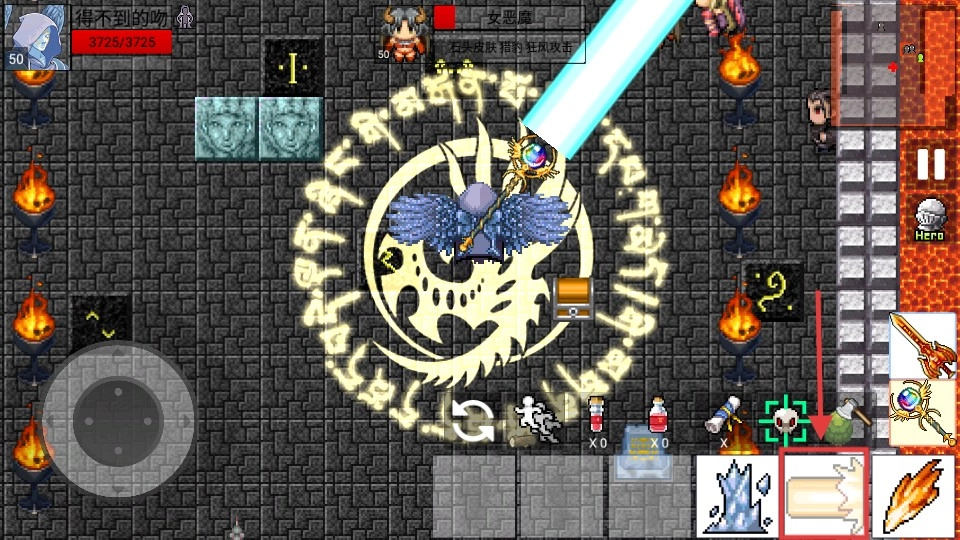 4、对战【女恶魔】时,释放【光束】类技能,利用大范围伤害清怪,结合道具增强战斗力,高效通关。
