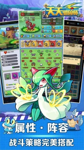 《天天驯兽师》是一款由经典口袋IP改编的回合制精灵对战游戏。玩家将化身为常青镇的新手训练家,开启探索精灵奇妙世界的旅程。游戏剧情遵循剧场版的叙事逻辑展开,高度还原了原著的世界观与核心情节,为玩家打造出一个满溢经典元素的精灵世界。玩法上,游戏融合了策略回合战斗与RPG养成系统,凭借独特的排兵布阵机制,引导玩家在战斗中更侧重策略规划与深度思考,通过合理搭配精灵战队来应对各类对手的挑战。除此之外,游戏还加入了公会战、挖矿、阵法、地底探险等丰富多样的副本玩法,等待玩家前去探索和体验。