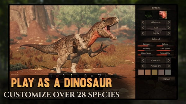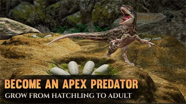 通过完成任务和杀死其他人,以幼崽的身份开始生活并成长为成,增强力量以应对更大的生物和更大的挑战,看着恐龙无缝地长出它们的角、板、刺和牙齿。