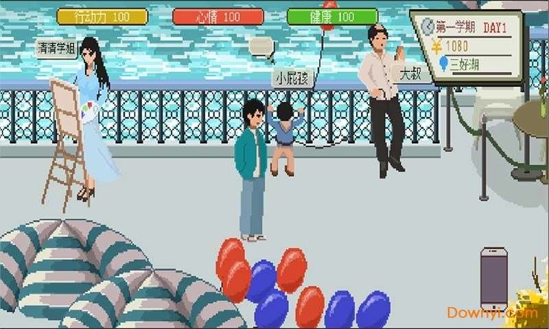 5、经典横版的游戏场景,复古怀旧的像素风格,策略竞技,完成大学生活。