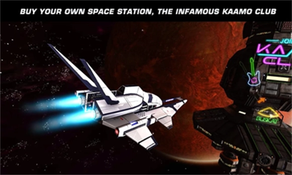 6、Kaamo Club:Shima星系Kaamo空间站可以通过DLC拓展包购得,也可以在游戏中完成支线任务获得。Kaamo支线任务链:Shima星系仅有Kaamo一颗行星,玩家初次进入时会收到Keith的老朋友——地下商人Mkkkt Bkkkt的求援通信以及请求清理掉空间站外5座太空盗前哨站的请求;在清理掉全部太空盗被准许进入Kaamo太空站后,Mkkkt表示自己不再想继续经营Kaamo俱乐部,并愿意以友情价转让给Keith,即3kw信用分和50tBuskat;攒齐这笔巨款回到kaamo空间站时自动扣除并获得空间站的所有权
