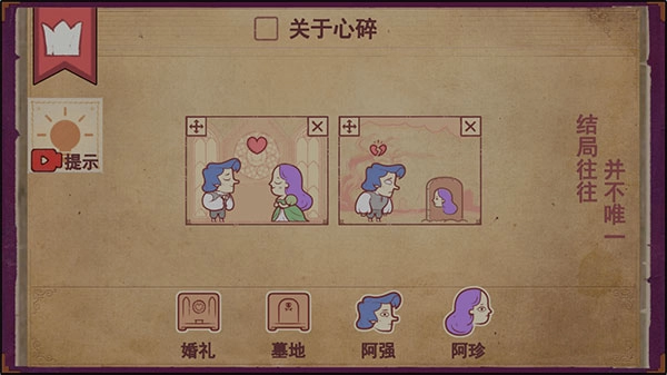 Storyteller游戏手机版是当下超火的剧情模拟类益智游戏,它还有讲故事的人、彩色世界、多彩世界这些译名。游戏围绕动态叙事这一核心玩法打造,为玩家用心设计了13个章节,每个章节包含4个小故事。玩法十分简单,玩家只需把下方的人物拖拽到不同画框里,就能完成上方给出的题目。在已知结局的前提下,玩家可以掌控剧情走向,自由创作出各种趣味小故事。前面发生的情节会为后面的事件埋下伏笔,就像玩家在第一个格子放入两个人物和婚礼场景,第二个格子放入一个人物和墓碑,到了第三个格子再放入之前那个死去的人物,他就会自动变成鬼魂,两人之间的关系也会从之前的恩爱变成惊吓……这种只需自由挑选人物和安排出场顺序,就能看到不同故事结局的玩法,既有趣又新颖,完全就是一个涵盖爱情、阴谋、怪物、背叛等丰富元素的故事生成器!