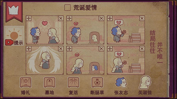 3、如果关卡的难度较大,我们可点击左方的提示获取一项标准答案,皆是我们还原答案剧情即可通过,具体如下图所示;