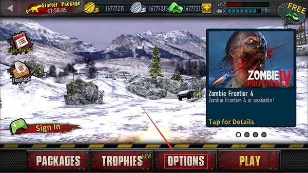 1、要设置中文的前提是通过游戏前面的新手教程,之后再返回主界面,点击下方的OPTIONS按钮。