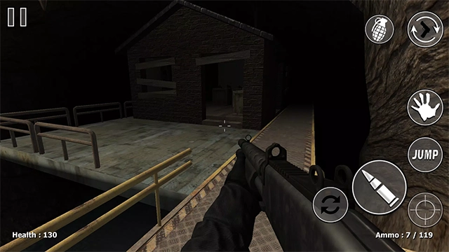 3、玩家需要灵活操作,通过左侧控制角色移动,右侧的射击、跳跃、换弹及瞄准按钮完成操作。