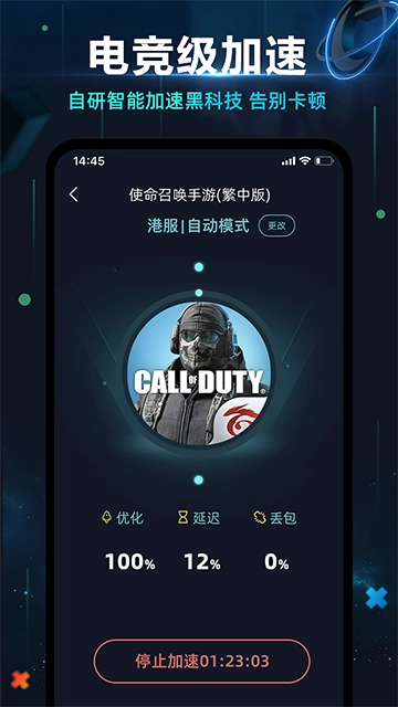 月轮全区一键智能加速引擎,自动帮玩家选择延迟最低的节点,加速更稳定,不管你是电信,联通,移动还是校园网都能更快速稳定流畅的进行游戏。降低延迟、断线重连、不掉线、防止卡顿,不丢包、WIFI/5G自动切换。