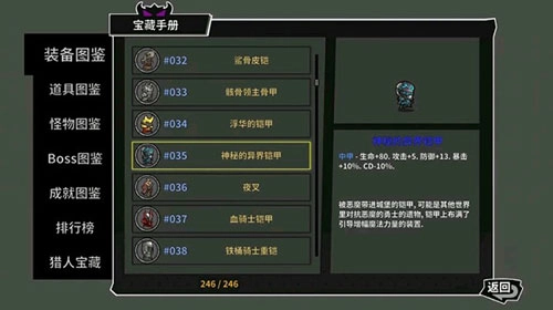 适中的打击感+易上手的操作模式+“稍稍有点难”的挑战难度,“横版动作闯关”这种熟悉的玩法将唤醒手指最初的躁动。大量的Roguelike元素,让所有关卡、怪物、道具都随机生成,运气也成了左右胜局的一把好手。