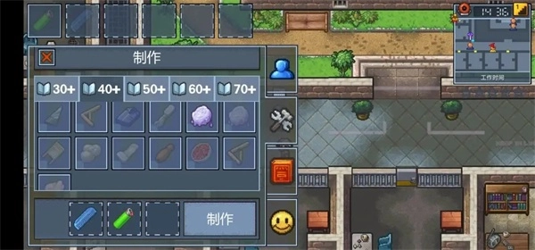在监狱里,你要开发你的创造力,使用有限的工具来制作各种道具。你可以将日常用品(如肥皂和袜子)组合起来,制造新的武器和工具,以帮助你实现目标。也可以从自助餐厅拿到叉子,在房间里铺一条隧道,并通过杂志和胶带制作海报以隐藏痕迹。你将很快了解到,胶带解决一切!