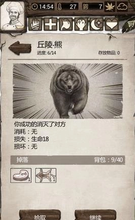 1、兽皮:可以在丘陵击杀熊获得,不过兽皮的获得概率较低,需要杀很多只熊才能获得。