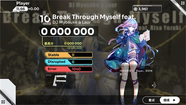 结算界面:分别显示Stable、Disrupted、Error的评价数量,同时相应判定右侧会分别以“+xxxx”和“+xxxx”的方式单独显示大S和大D的数量,同时对所得分数进行评级。