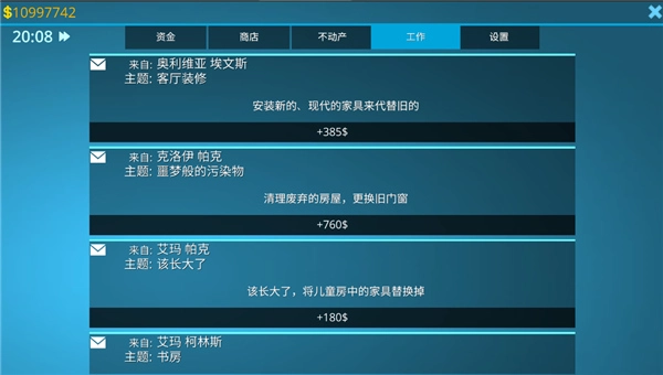 9、在工作板块中,拥有着大量的实际订单,附带详细的设计需要,你需要根据顾客的需求设计出合理的房间。