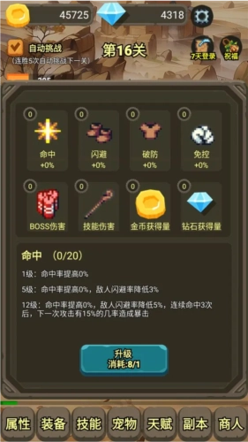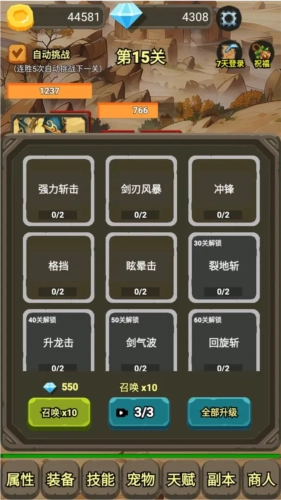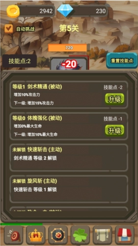 1、通过金币升级基础属性。