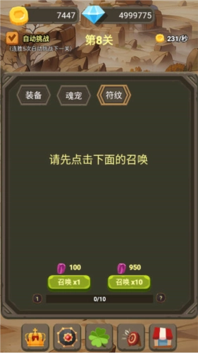 2、通关钻石召唤的方式获取装备。