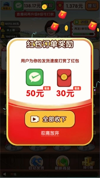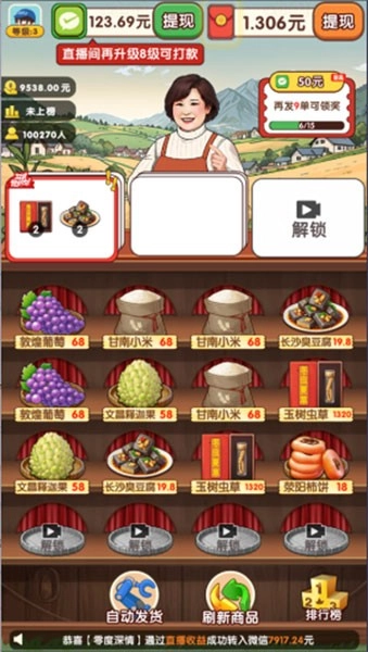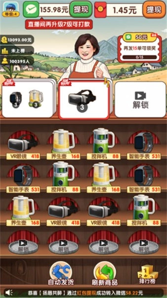2、通过完成订单就能不断的去提升直播间等级,会解锁越来越多种类的商品,就能够收获更多的红包奖励了。