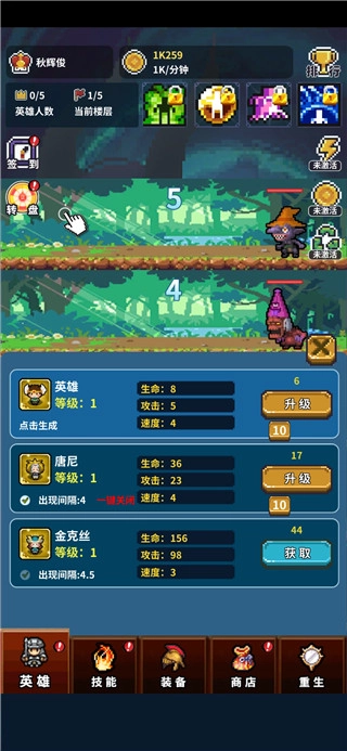 一款很有趣的放置闯关游戏,成为勇者不断地爬塔吧。