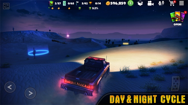 有几张地图供您选择,您可以在艰难的岩石路线上慢慢驾驶您的钻机,或者在沙漠平坦的沙地上快速行驶。 想要从小路上休息一下? 在特技公园玩,您可以使用坡道“测试”您的钻机的耐用性。