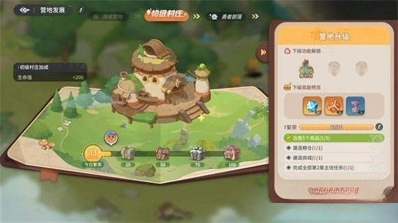 5.点击右上角的营地发展可以查看提升等级需要的目标,完成后就能升级营地等级解锁更多内容。