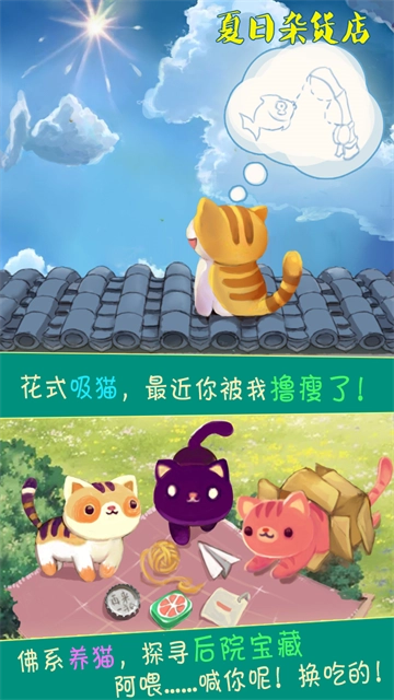 在店铺后方的小院里,你可以收养多只性格各异的猫咪。为它们准备好食物和行囊,它们便会独自踏上旅途。
