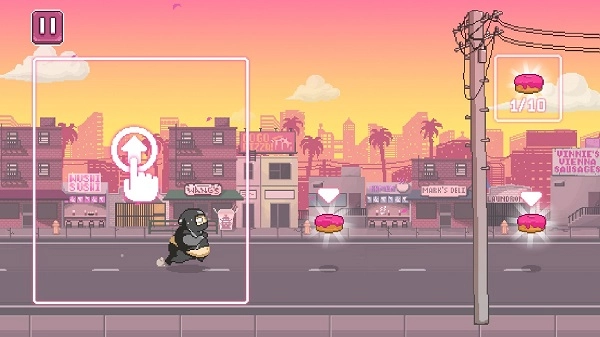 不过在游戏的关卡挑战内,会不同不同的情况发生,可能是甜甜圈的位置不合适,也可能是鸽子叼着甜甜圈,亦或者是慕名而来的小怪兽会扔出寿司炸弹迷惑你,不过关于上述可能发生的情况,你可以通过触按手机屏幕来进入“子弹时间”,通过调整瞄准的位置,进行射击,并收集甜甜圈。