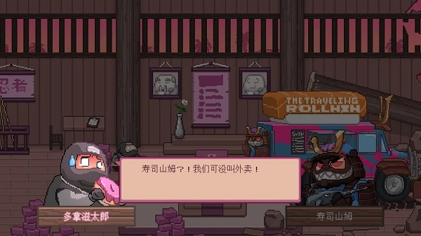 《忍者大杂烩》又名Ninja Chowdown,是一款洋溢着喜剧趣味的动作角色扮演游戏。主角多拿滋太郎采用圆润的2D像素画风,和大众印象中冷峻凌厉的“忍者”形象截然不同,单从外观就能感受到游戏的诙谐感。
