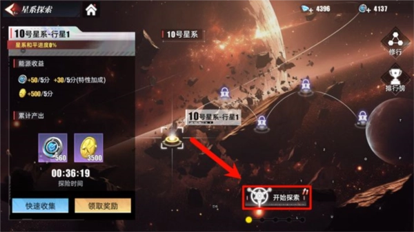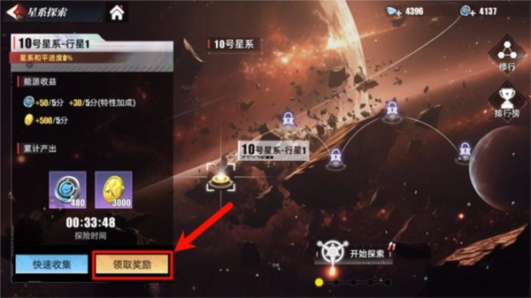 在历练-挑战-星系探索副本中即可领取每分钟自动生成的探索点和星币(最高累计24h,所以记得每天来领取!)