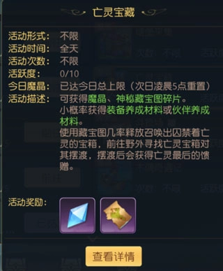 亡灵宝藏将在26级解锁,全天开放且无进入次数限制,但需有人释放亡灵后,冒险者才能前往进行封印。每次召唤出的亡灵数量有限,各位冒险者要抓紧机会铲奸除恶。