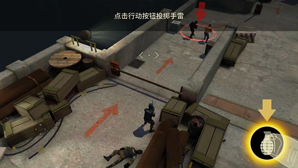 5、当敌人数量较多时,你还可以点击右侧的炸弹图标,瞄准目标后投掷手雷,然后就可以开始自由探索和射击了。