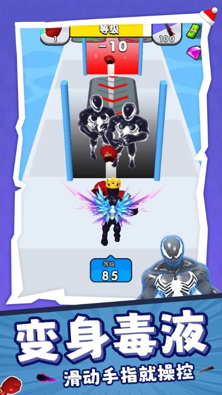 《毒液人吞噬进化》是一款动作闯关游戏,玩家需要通过不断吞噬来实现进化,升级强化毒液人,消灭所有敌人。游戏拥有超大地图供你挑战,适合各年龄段玩家,能带来沉浸式竞技体验,非常值得尝试,感兴趣的话就来试试吧!
