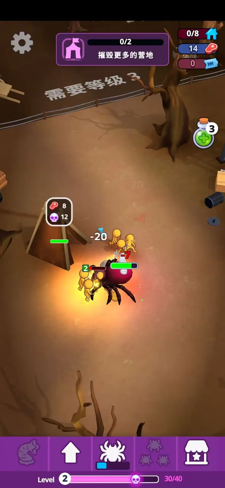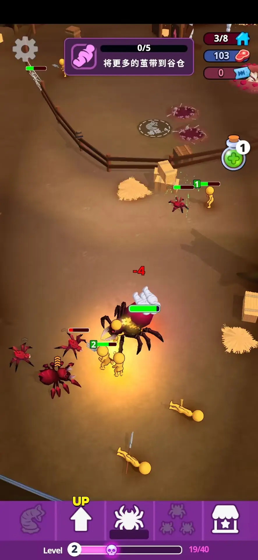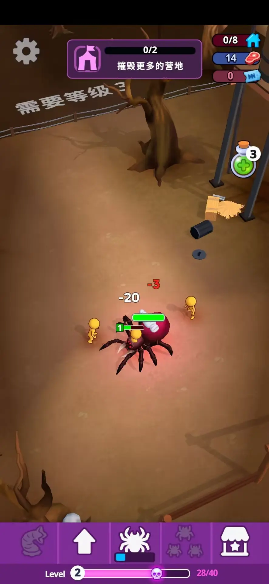1、想要让自己生存下去,首先就要解决食物的来源问题,利用蜘蛛网的方式帮助我们获取更多的能源2、织网以困住入侵者,收集足够的食物来喂养所有蜘蛛,并不惜一切代价保护珍贵的蜘蛛卵3、用茧包裹猎物,将其带到巢穴谷仓,种下蛋并喂食小蜘蛛,可以使被吞噬的人类变成准备捍卫巢穴的强大战士4、你的殖民地越大,邪恶的人带来的武器就越强大
